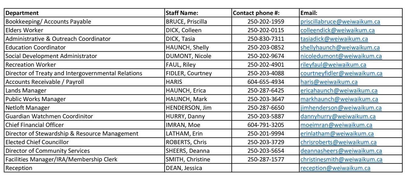 Staff Contact List